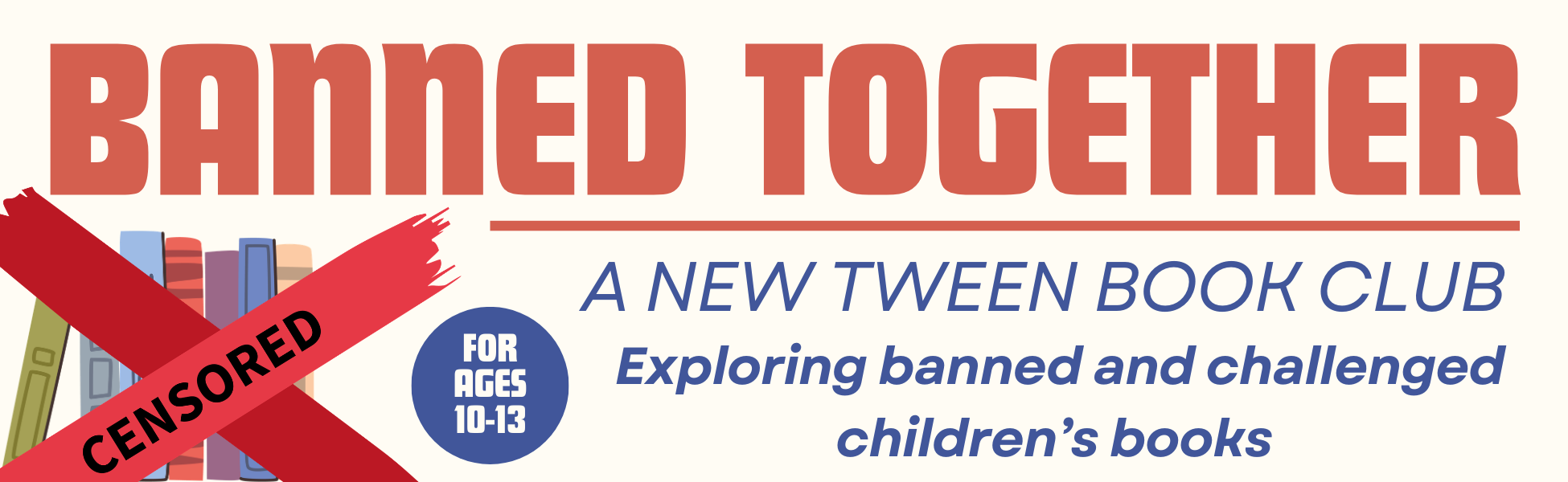 Banned Together is a book club for all the rebel readers out there! This club will focus on introducing tween readers to frequently banned or challenged children's books. Along with the book discussion we will discuss why the book has been banned and the impact it has on its readers. This club is a great opportunity to introduce tweens to classic and relevant children's literature as well teach them about the importance of literary freedom.