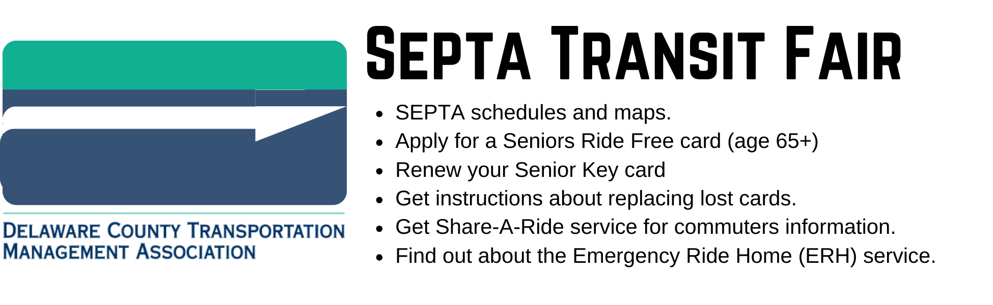 The DCTMA (Delaware County Transportation Management Association) will provide FREE information about your transportation needs in the Adult Library.